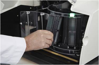 3、自動裝載器可容納400張1×3″載玻片,且適用于各種類型常規(guī)載玻片。掃描過程中,載玻片將被自動傳輸?shù)捷d物臺,掃描后送回裝載器。
