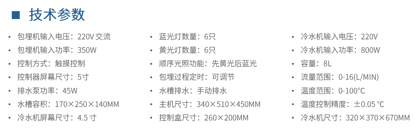 將脫水浸潤完善的標(biāo)本置入合適的包埋模具內(nèi),放入光固化裝置聚合。用白光和藍(lán)光控制聚合。
