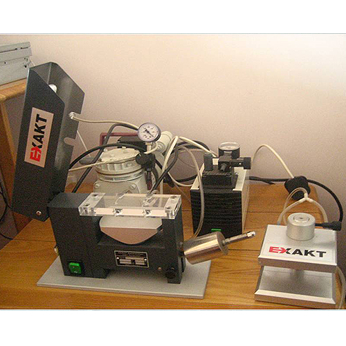 該裝置由E401真空粘合壓片器、E402精確粘合壓片器、微型抽真空泵組成。該裝置能夠完成將樣本包埋塊粘接到上下載玻片的工作。 該裝置是硬組織切片機或硬組織磨片機必不可少的配套設備。