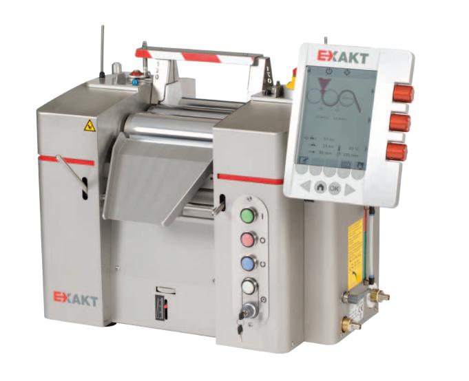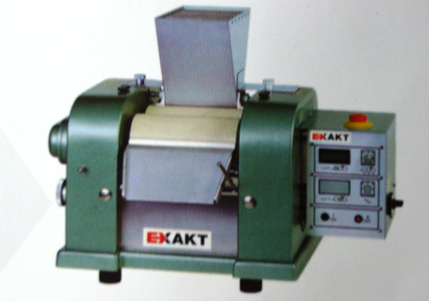 1.可達小于1微米的細度。2.間距和壓力模式可在屏幕進行調(diào)整。3.自動校準 自動調(diào)節(jié)輥的間距和平行。4.所有的操作參數(shù)可電子顯示及調(diào)整。5.數(shù)據(jù)紀錄提供參數(shù)記錄文件(需另購)6.在5μm的間距下,產(chǎn)量可達 27.5 Lhr7.使用過程中容易控制或保持滾筒的溫度變化。8.安全性過載保護,清洗和反轉(zhuǎn)模式。 9.通用性從實驗室到生產(chǎn)。 10.滾筒材質(zhì)可選擇鍍鉻不銹鋼、碳化鎢、氧化鋁或碳化硅。 產(chǎn)品描述 新型 EXAKT 80S PLUS 三滾機具有更高的安全標(biāo)準,更方便的操作,并且可以更精確地調(diào)整間距。更強力的馬達,可選擇的溫度監(jiān)測以及陶瓷或金屬滾筒材質(zhì),新型80S PLUS 適合用于加工各種不同的材料,適用范圍于實驗室中的少量至批量生產(chǎn)。在大范圍的操作條件和高規(guī)格的安全性下,確保了許多產(chǎn)品的理想使用條件。產(chǎn)品質(zhì)量符合CE標(biāo)準。